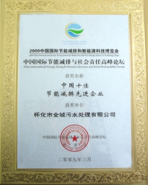 2009年3月在胡錦濤、溫家寶等中央領(lǐng)導(dǎo)出席的中國國際節(jié)能減排與新能源科技博覽會(huì)和高峰論壇上評為“中國十佳節(jié)能減排先進(jìn)企業(yè)”。